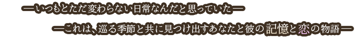 季節が巡るごとに紡がれる、甘く切ない恋の行方。